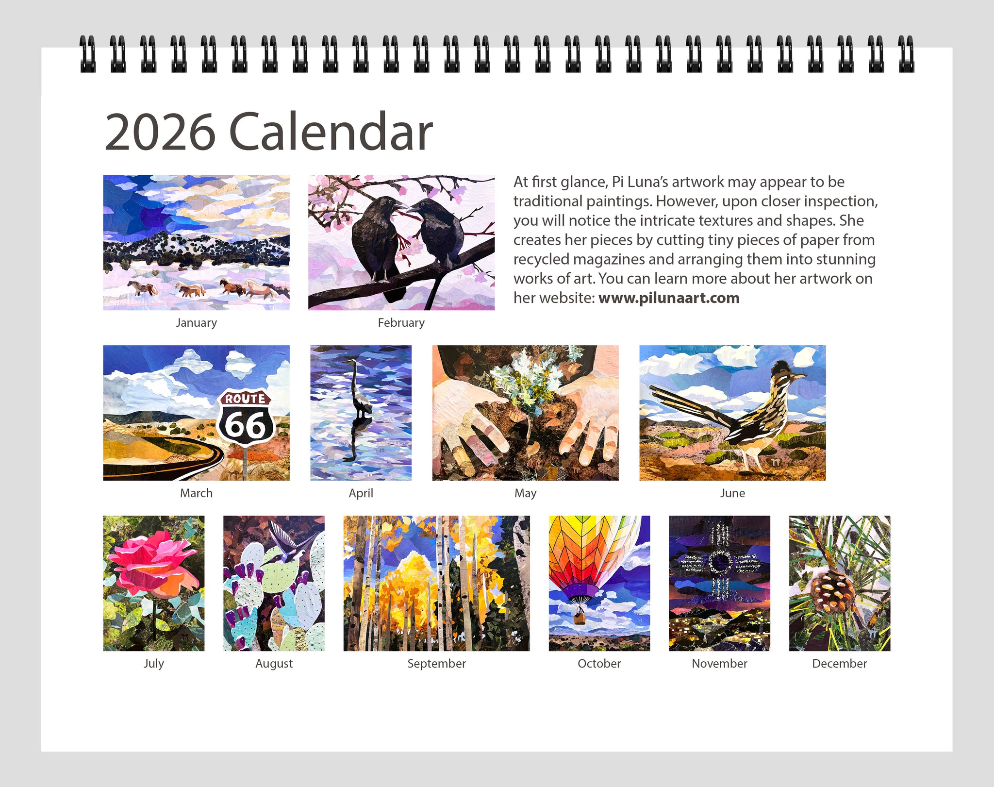 Enjoy Pi Luna's artwork year round with her 2026 wall calendar.
